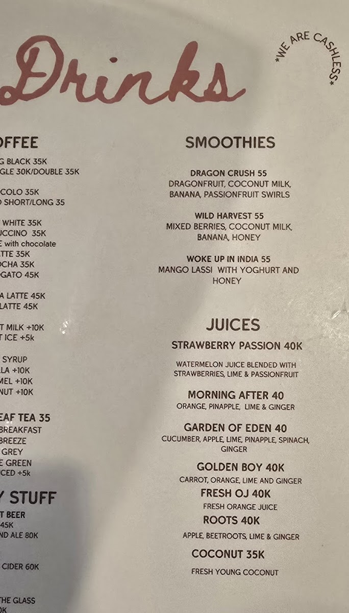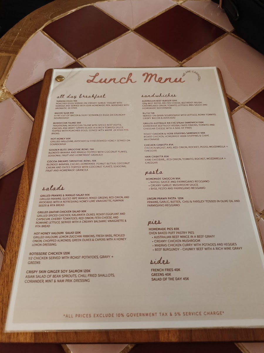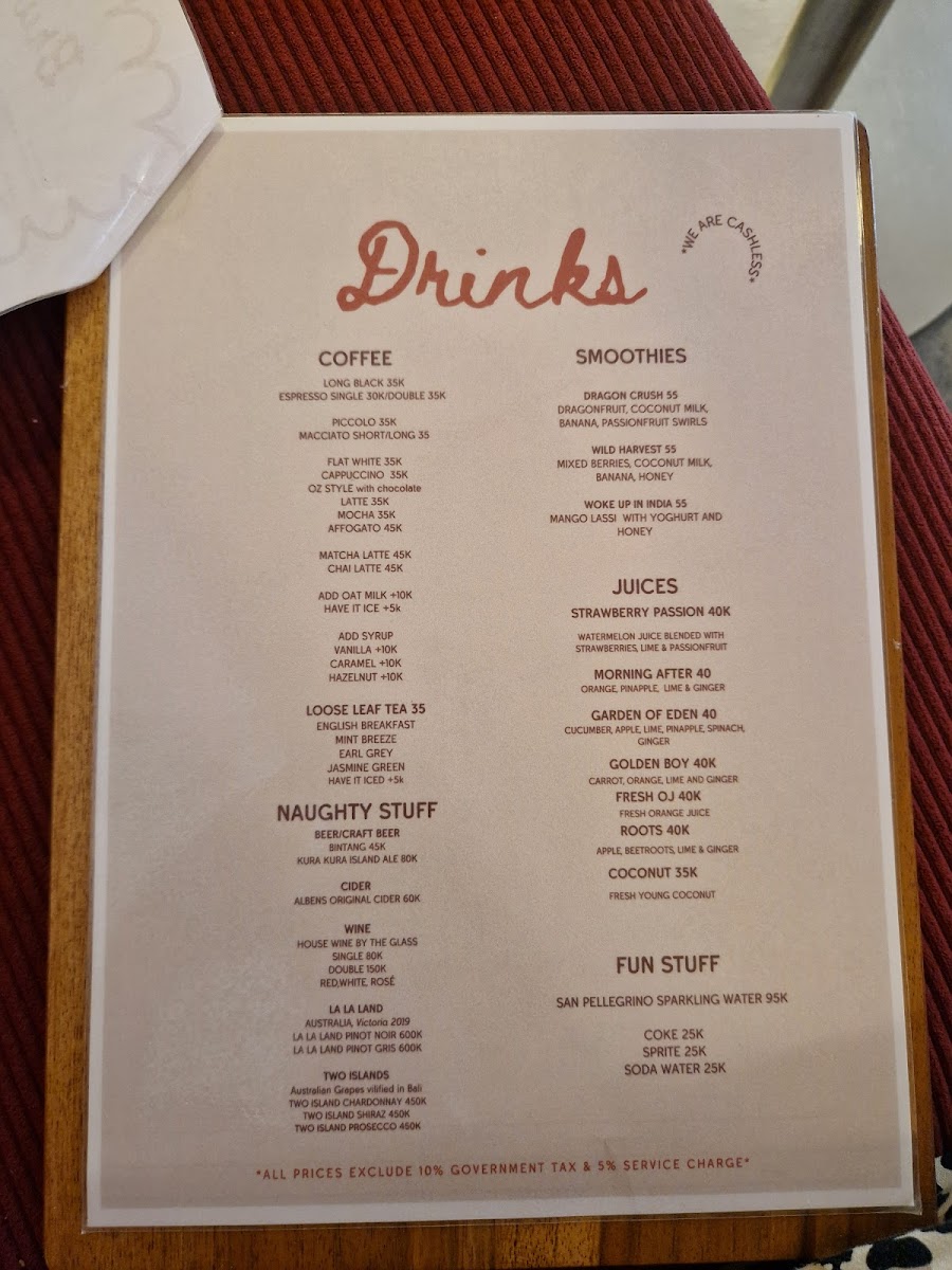 The menu aligns well with the cafe’s inviting environment, whether you choose to settle into the indoor AC room or the vibrant outdoor terrace. The food and drinks complement the space by offering familiar flavors with a fresh, local touch—encouraging lingering over a good cup or sharing small plates throughout the day.