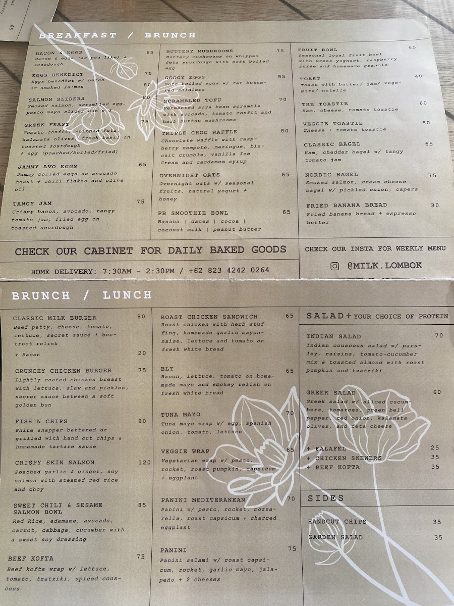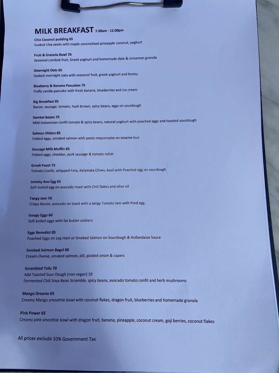The menu at Milk Espresso - Kuta Lombok offers a thoughtful selection of simple café dishes and casual bites designed to complement a relaxed yet lively atmosphere. Whether you're stopping by for a morning boost or a laid-back brunch, the options here cater well to both early risers and midday visitors looking for comforting yet fresh flavors.